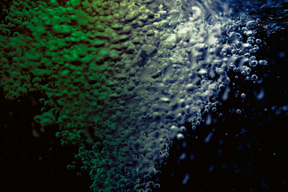 Toisella kädellä hän suihkutti vettä laatikkoon ja toisella otti kamerallaan kuvia. Kuplat nousevat mustaa kangasta vasten kuin järven pelottavista syvyyksistä.